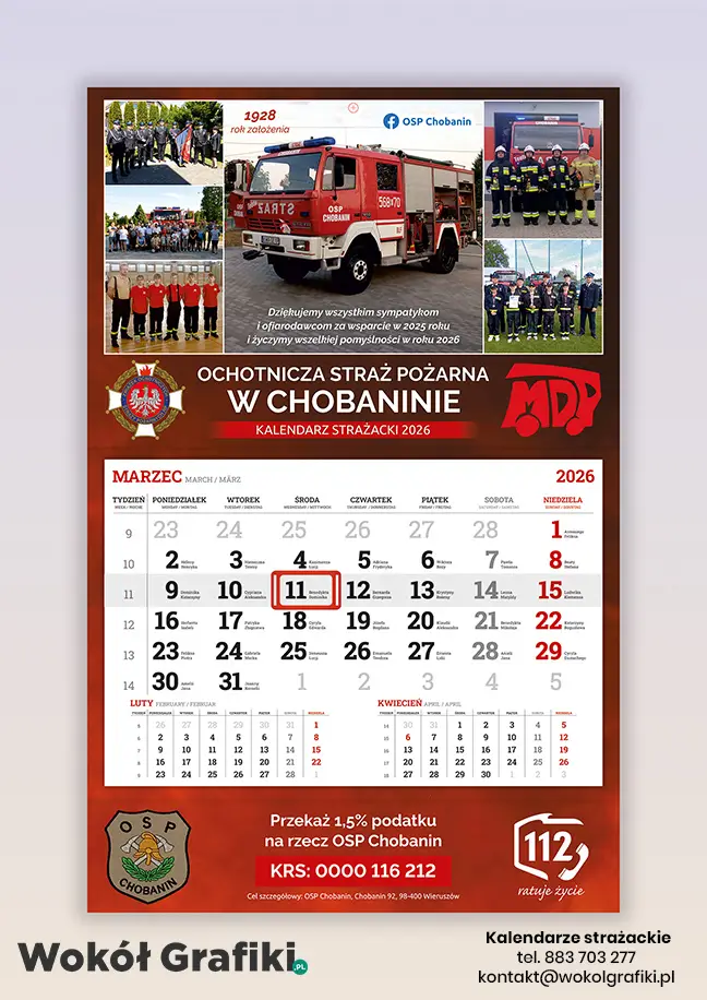 Koszt wysyłki kalendarzy strażackich jest darmowy.