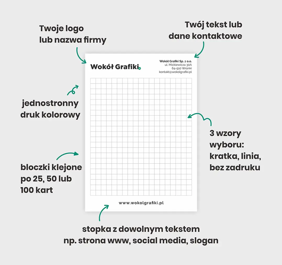 Cena zawiera kolorowy, jednostronny druk notesów z własnego projektu oraz dostawę.