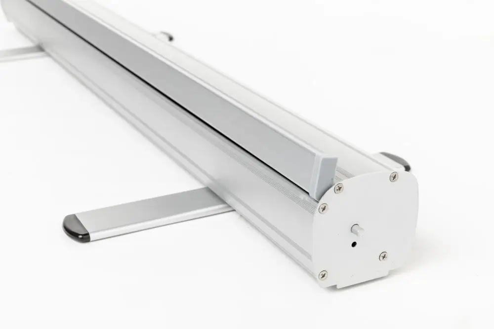 Taki system świetnie sprawdza się na targach, konferencjach czy po prostu na korytarzu Twojej firmy. Rozłożenie i złożenie go trwa minutę.